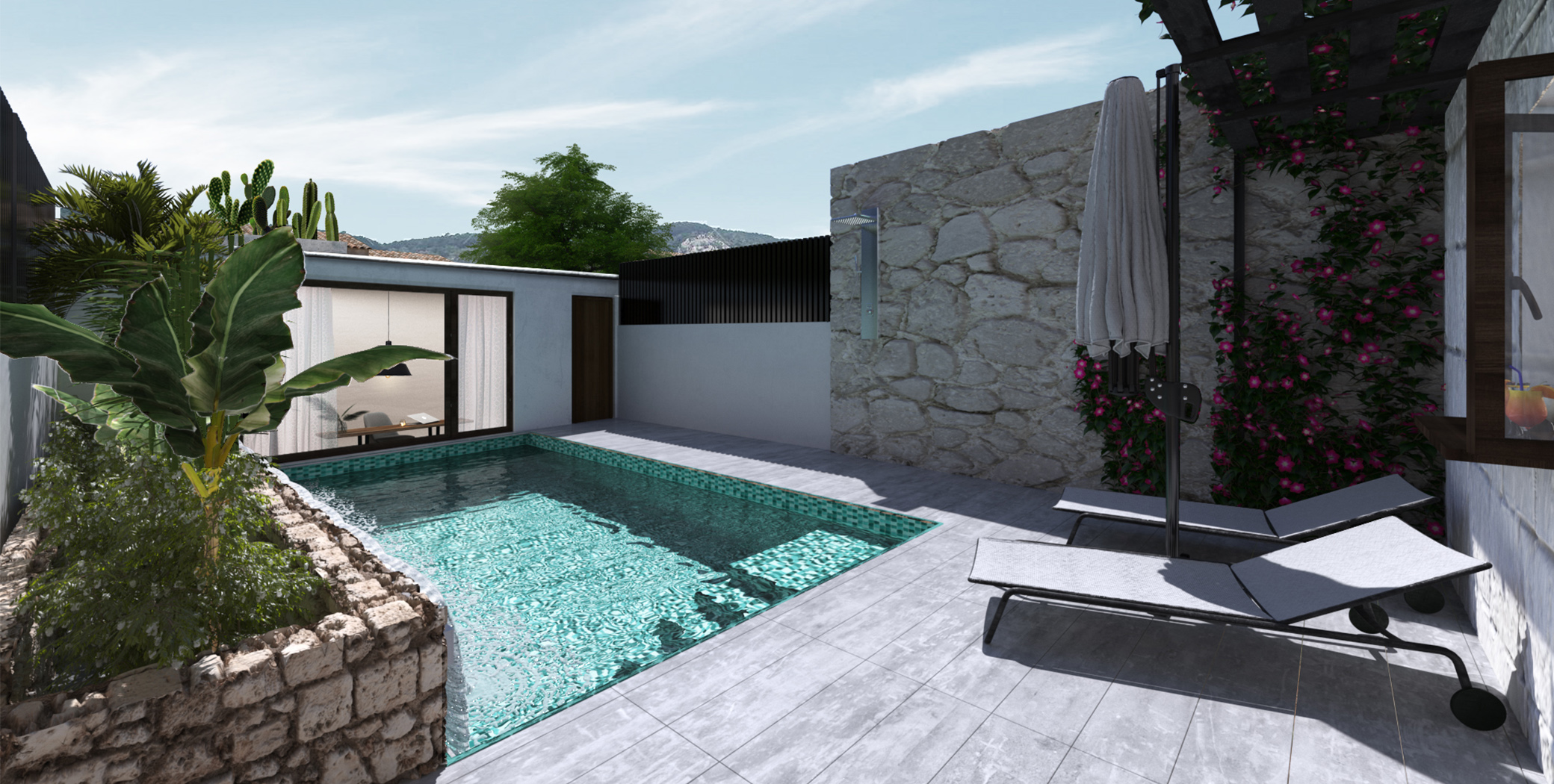 Exclusiva urbanización de 8 casas adosadas diseñadas para disfrutar de la tranquilidad y la naturaleza. Con jardín y piscina comunitaria, ofrecen impresionantes vistas a la Sierra de Tramuntana en Moscari.